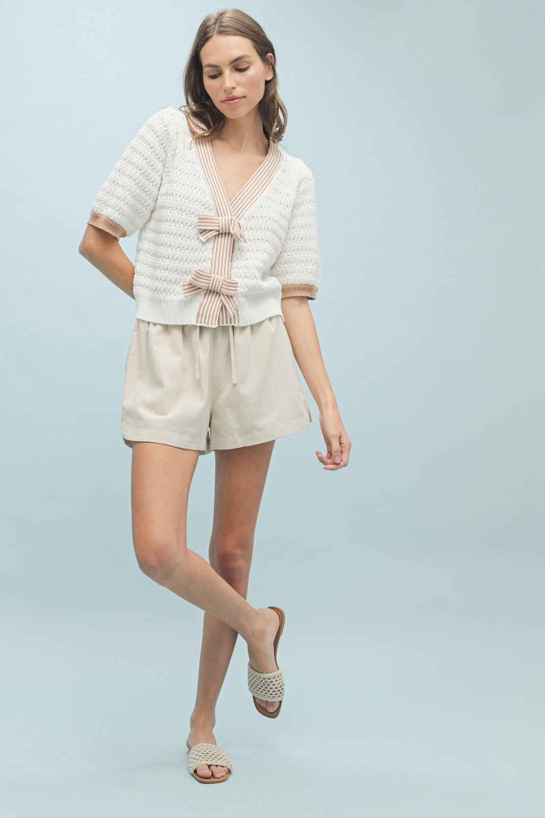 BALLOON SLEEVE BOW DETAIL SWEATER